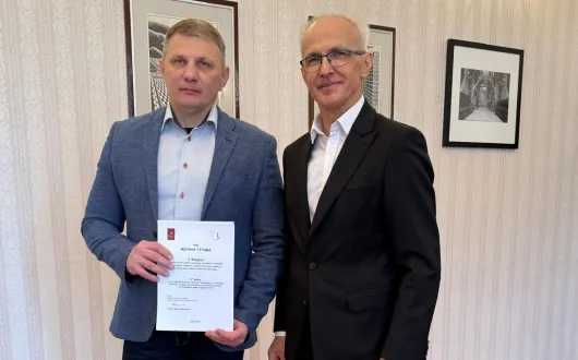 Image Dyplomy za projekty „Psychologia kolorów i kształtów w ewakuacji” dla studentów z Państwowego Uniwersytetu Nauki i Technologii z Dniepru wręczone